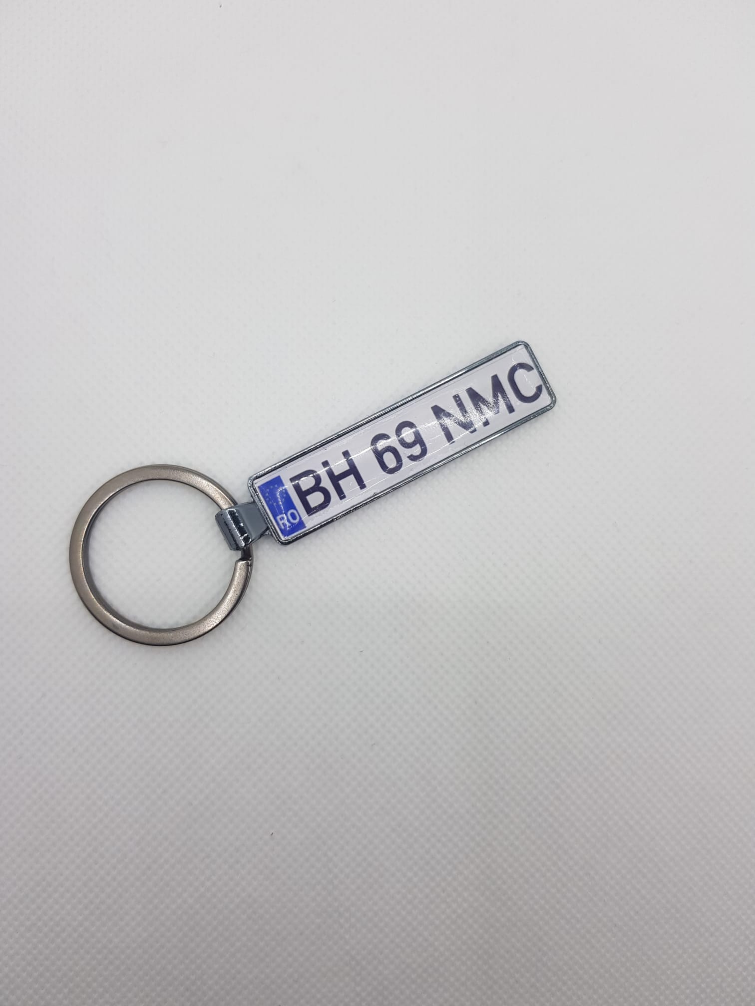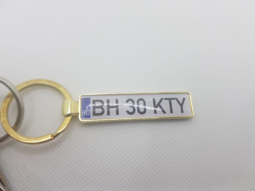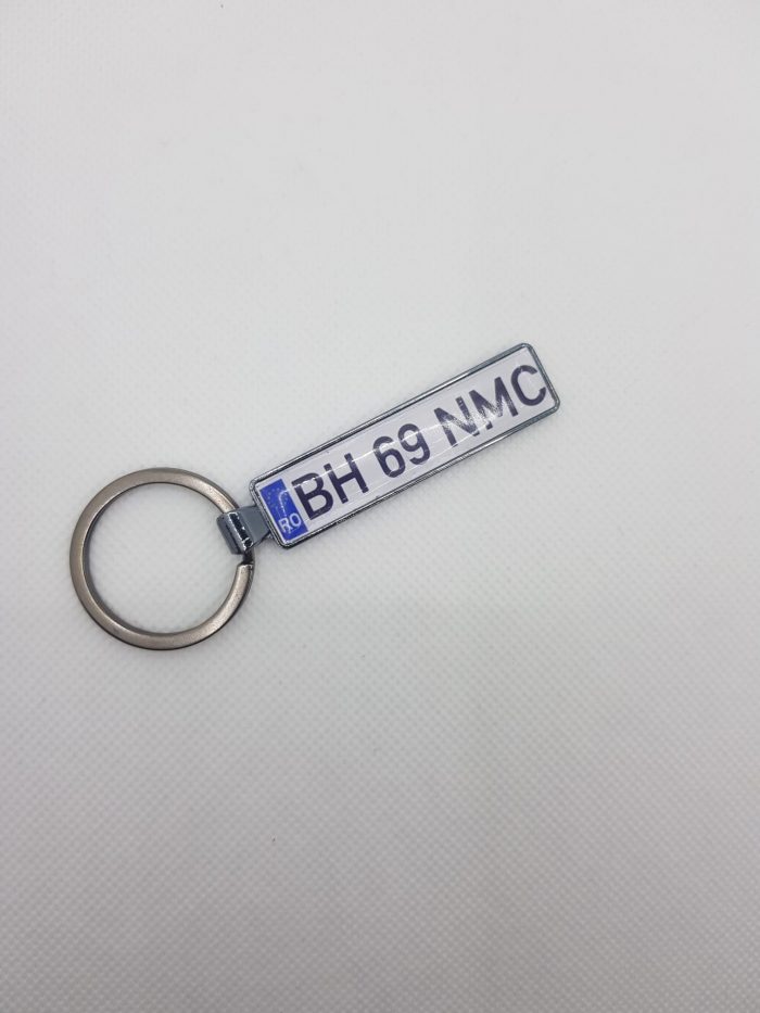 Breloc personalizabil cu insertie foto, din otel inoxidabil, partea personalizabila are forma unui nr de inmatriculare, personalizabil fata-verso