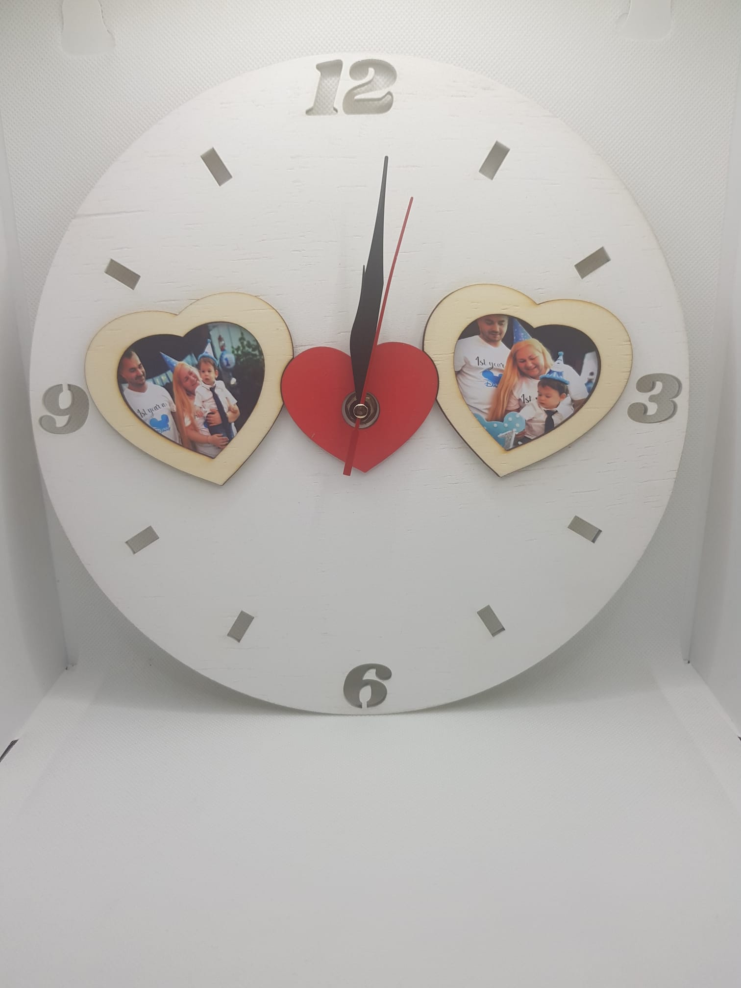 Ceas Rotund lemn cu insertie foto in forma de inima